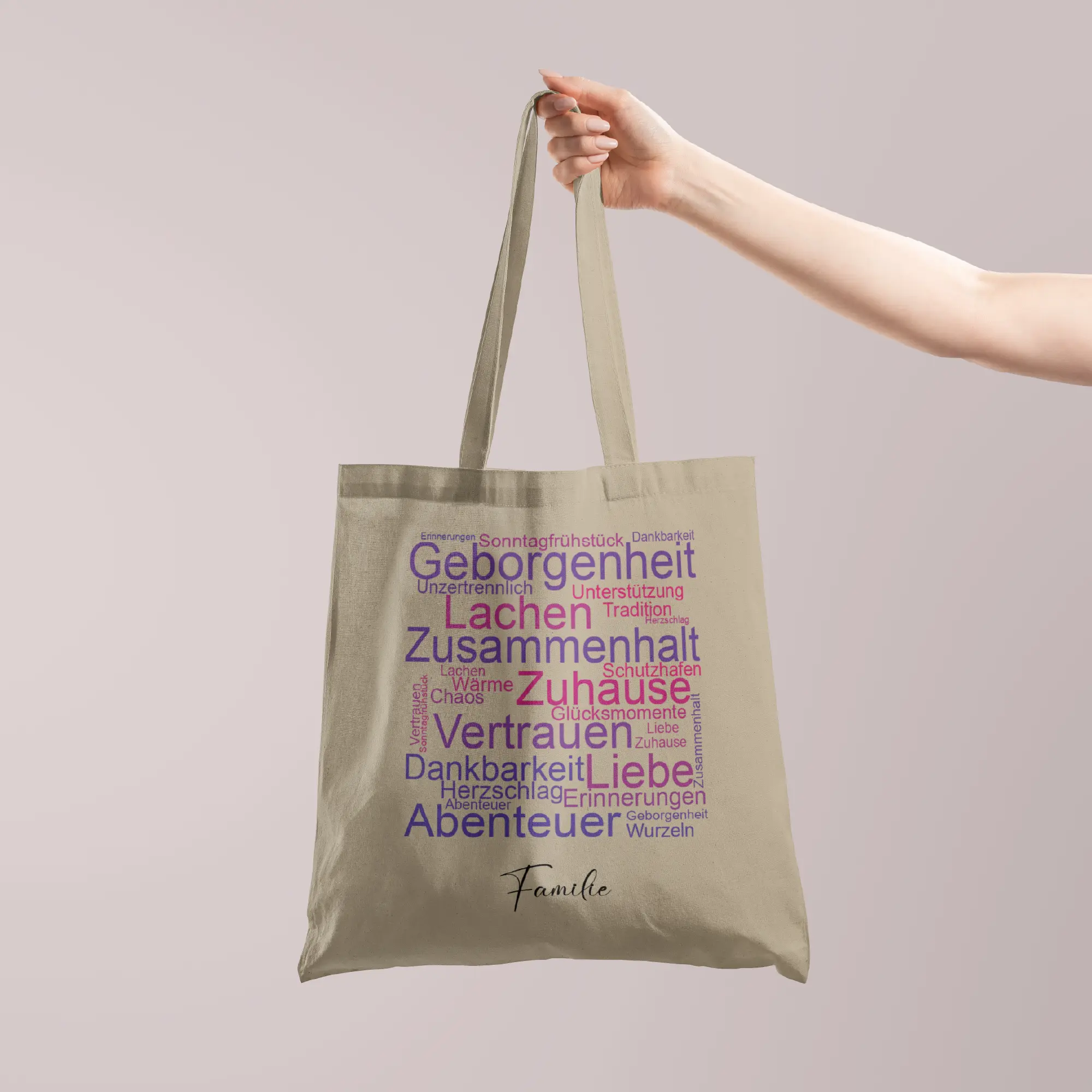 Egal ob als nachhaltige Geschenkverpackung (die man danach selbst benutzt!), als stylische Tasche fürs Büro oder als treuer Begleiter beim Stadtbummel – die Wordcloud passt zu jedem Outfit. Sie ist minimalistisch genug für den Alltag, aber detailreich genug, um immer wieder neue Begriffe darin zu entdecken. Gönn dir ein Teil, das wirklich zu dir passt, oder mach jemanden glücklich, der eigentlich „schon alles hat“.